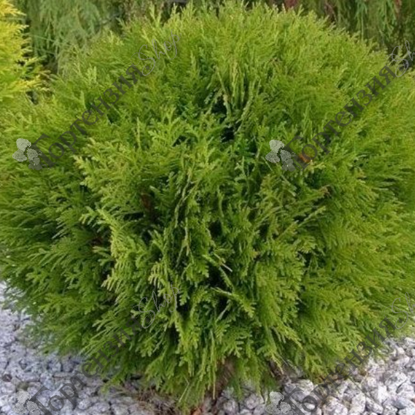 Туя западная 'Хозери'- карликовый, вечнозелёный кустарник  шаровидной формы. Высота взрослого растения 80 см, диаметром до 1,0 м. Годовой прирост 5-10 см. Хвоя чешуйчатая, темно-зеленая, к зиме с бронзовым  оттенком. Зимостойка. Солнцелюбива. Предпочитает плодородные, суглинистые почвы, хорошо переносит стрижку. На зиму крону желательно связывать, создавая укрытие.