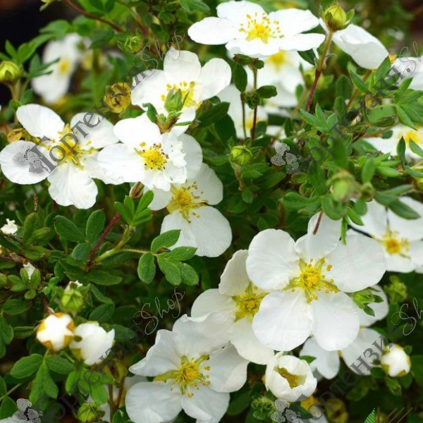 Лапчатка кустарниковая Абботсвуд (Potentilla fruticosa Abbotswood) — многолетний декоративный кустарник с плотной шарообразной кроной высотой до 1,0 –1,3 м и шириной до 1,2–1,3 м, ежегодный прирост — 20–25 см, продолжительность жизни — 20–30 лет; листья желтовато‑зелёные, сложные (из 3–7 листочков длиной до 3 см), осенью желтеют; цветёт обильно с июня по октябрь многочисленными белыми цветками диаметром до 3 см; предпочитает солнечные участки или полутень, нетребовательна к почвам, но лучше растёт на рыхлых дренированных грунтах, морозостойка (зона 4), засухоустойчива, однако в жару нуждается в поливе; хорошо поддаётся стрижке, долго сохраняет форму, подходит для одиночных и групповых посадок, живых изгородей, бордюров, альпинариев и рокариев
