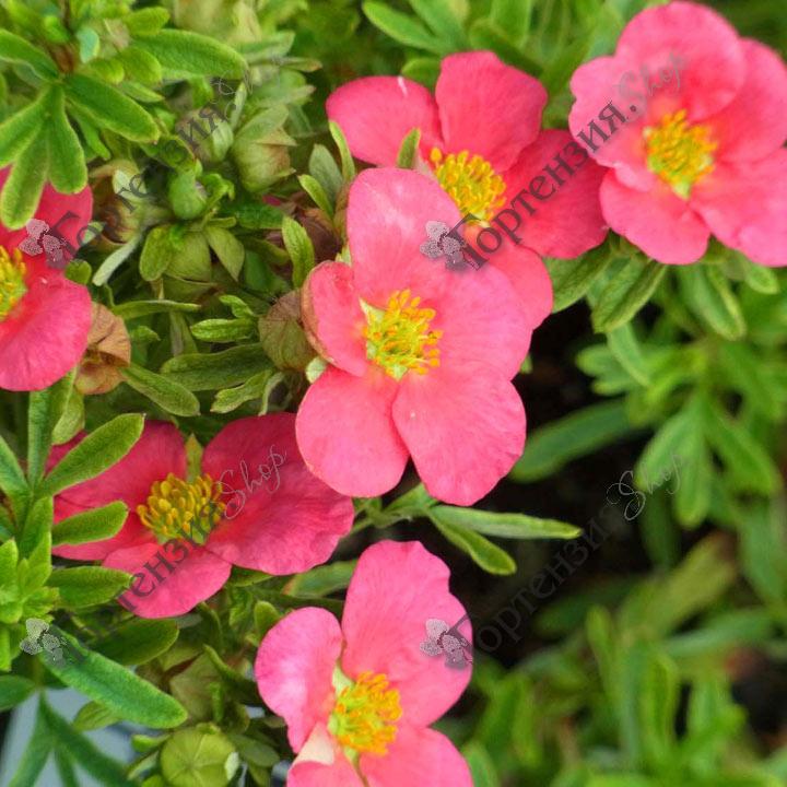 Лапчатка кустарниковая 'Беллиссима' Potentilla fruticosa `Bellissima` - компактный,невысокий  кустарник с густой кроной ,высотой до 30 см. Сорт устойчив к выгоранию цвета, и имеет непрерывное цветение. Цветки полумахровые, яркие, насыщенно-розовые, крупные, диаметром 5 см. Листья зеленые с легким опушением. Цветёт обильно в июле-октябре.Не требует обрезки!