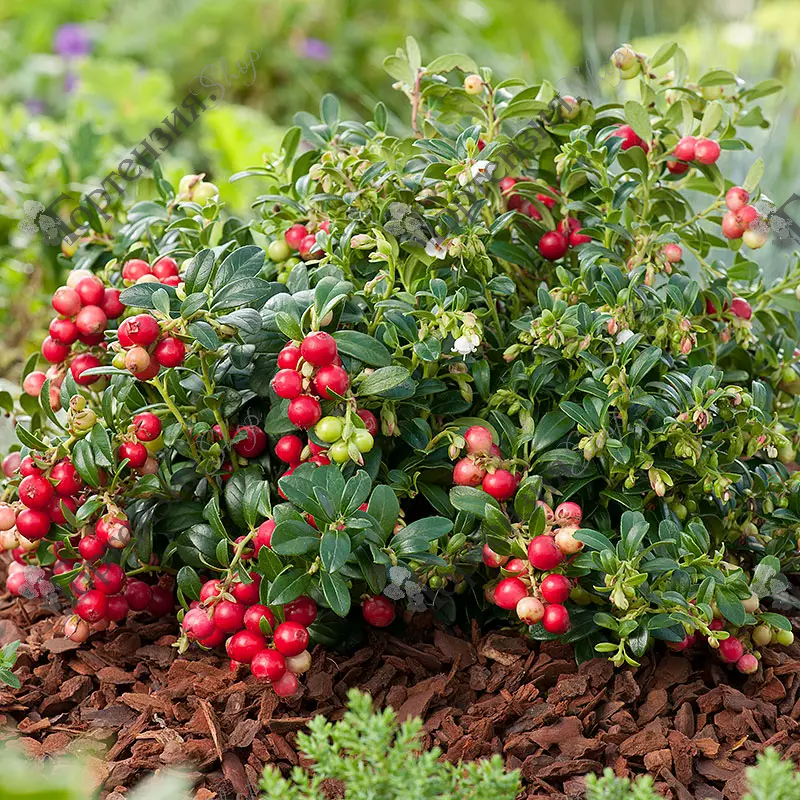 Брусника садовая Коралл – это один из наилучших сортов голландской селекции. Саженцы брусники крупноплодной достигают в высоту и ширину до 30 см., а плоды размером до 0,3 грамм. Брусника цветет в мае и июне приблизительно до 3-х недель. Саженцы брусники садовой отлично растут на кислых почвах, на малоплодородных. Сажать саженцы рекомендуется в открытое, хорошо освященное место. Высаживать саженцы можно с весны по осень в любое время. Брусника Коралл занимает 1 место своей декоративностью, т.к. ее можно использовать в оформлении ландшафтного дизайна. Сорт Коралл обильно плодоносит и способен дать урожай 2 раза за сезон, первичный – в июле-августе и основной- в сентябре- начале октября. Кустики довольно компактные, шаровидной форсы, с одного такого куста можно получить до 500 гр. ягод. Ягоды хорошо хранятся и транспортируются. Данный устойчив к заморозкам, а также вредителям и болезням, абсолютно неприхотлив в уходе.