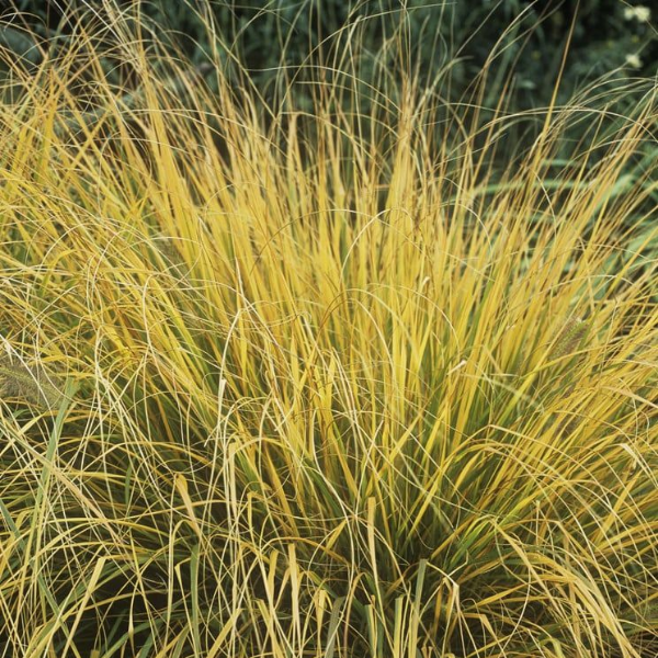 Теплорастущий рыхлодернинный многолетник с укороченным и утолщенным корневищем. Безусловный солист первого и второго плана. Куртины особенно декоративны осенью, когда они приобретают яркую желтую или оранжевую окраску. Имеется много декоративных форм и сортов. Листья узкие, прямые, прикорневые, шириной 3–6 мм, часто сероватые или сизовато–зеленые. Стебель 40–90 см высотой с длинным соцветием-метелкой, узкой, сжатой, 15–30 см длиной, синевато-фиолетовой или желтоватой. Зацветает в VІІІ. Стебли приобретают к осени золотистый цвет и не ломаются до середины зимы. Для лучшего роста растению требуется влага