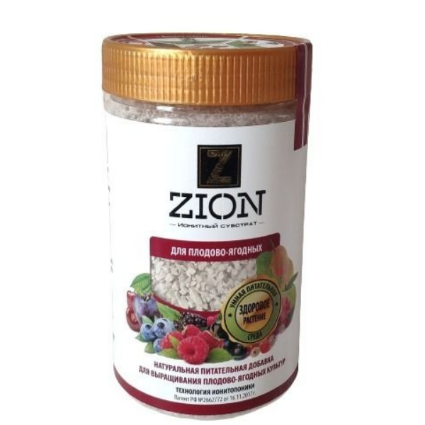 Удобрение Цион Для плодово-ягодных - питательный ионный субстрат, выделяет питательные элементы по запросу растения, обеспечивая образование новых побегов, обильное цветение и плодоношение. Предотвращает вымывание минеральных веществ, внесенных в почву. Позволяет на длительный период обходиться без внесения минеральных удобрений. ЦИОН содержит полный набор микро и макроэлементов, необходимых для гармоничного роста растений. Рекомендуется прямой контакт с корневой системой. Передозировка и корневой ожог невозможны. Не является минеральным удобрением, не содержит нитратов, гормонов, пестицидов, гербицидов и ускорителей роста. Обеспечивает формирование сильной корневой системы, эффективную подготовку растения к зимнему периоду и полноценное развитие растения после него.